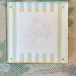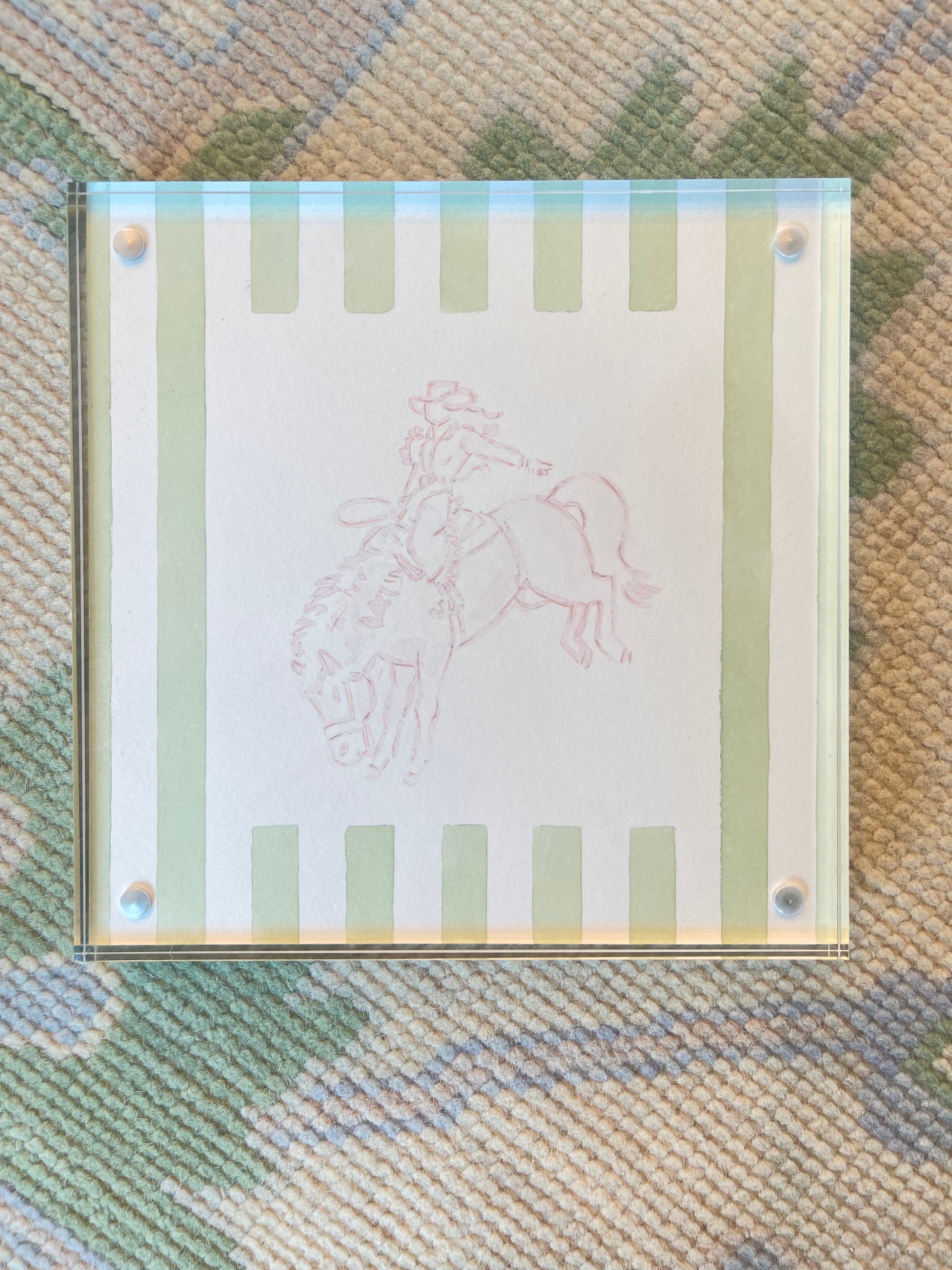 Hand-painted 8x8 (inches) watercolor, one-of-a-kind painting. Finished in a modern acrylic frame. This collection is curated from a local Texas artist in pastel colors with a southern cowboy and cowgirl theme.